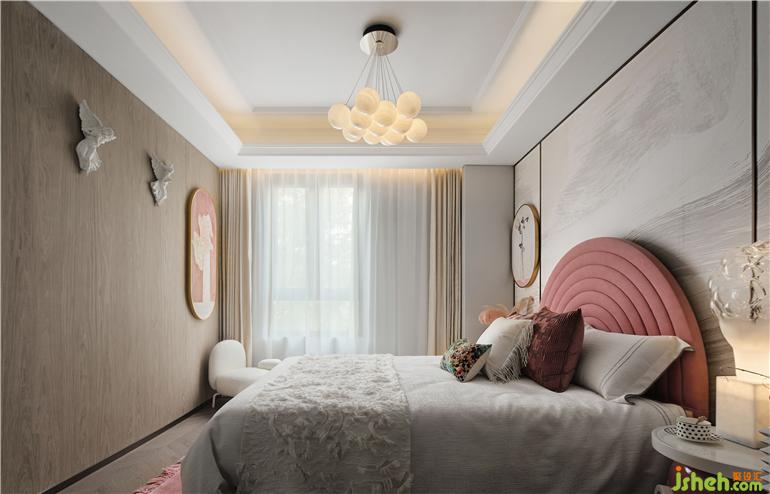主臥以水墨色和大地色展現(xiàn),燈飾、壁畫(huà)、香薰碰撞出默契的陳設(shè)藝術(shù)。中鐵建樣板間設(shè)計(jì)落地窗引入開(kāi)闊有度的視野,弧線優(yōu)美的天花點(diǎn)綴以晶瑩的水晶吊燈,于高級(jí)觀感中延伸出無(wú)限綿長(zhǎng)的生命力。老人房以日常點(diǎn)滴構(gòu)筑生活美好,空間中一切陳設(shè)連貫統(tǒng)一,淡雅的色系鋪灑在背景墻的紋理之上,舒適閑雅由此舒展開(kāi)來(lái)。女孩房空間中夢(mèng)幻的粉色代表著童真和希望,兼容時(shí)尚現(xiàn)代的屬性及生活需求,構(gòu)建出簡(jiǎn)潔明快、朝氣蓬勃的空間調(diào)性。