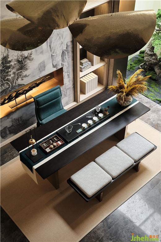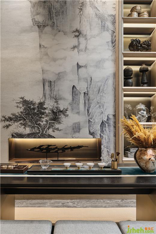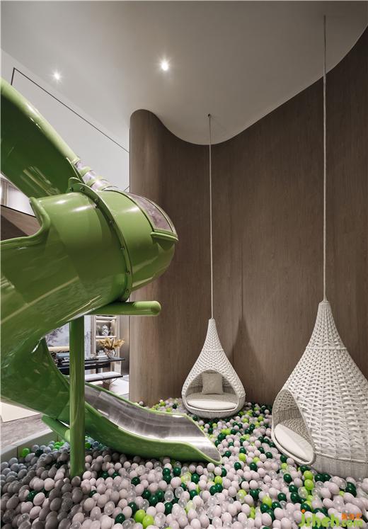 兒童娛樂(lè)區(qū)的綠色滑梯連接上下兩層,讓家里秒變游樂(lè)場(chǎng)。童趣元素和藝術(shù)陳設(shè)的疊搭,中鐵建樣板間設(shè)計(jì)為孩子創(chuàng)造充滿趣味的成長(zhǎng)空間。茶室自有雅趣,一盞茶壺、幾縷幽香,穩(wěn)重的深色系在空間中鋪陳,親切平和地呈現(xiàn)溫潤(rùn)而安然的理想生活形態(tài)。