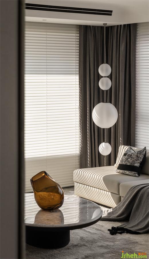 人與環(huán)境、人與人之間的“尺度感”是現(xiàn)代生活的迷人之處??蛷d從空間革新、復(fù)合功能、場(chǎng)景升級(jí)三個(gè)維度入手,實(shí)現(xiàn)功能與美學(xué)的效果最佳。以空間為媒介,藝術(shù)為工具,將生活與社交中的諸多模塊平鋪,最大化的將室外風(fēng)景進(jìn)入。