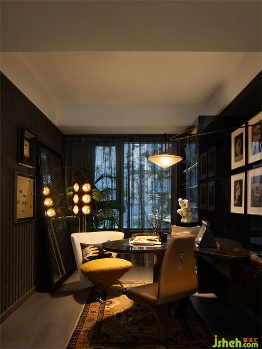 簡單的幾本書和擺件,多功能廳在黑白棕三種色調下,溫和雅致,像是時光里的一首詩,訴說著一種生活的自在從容。