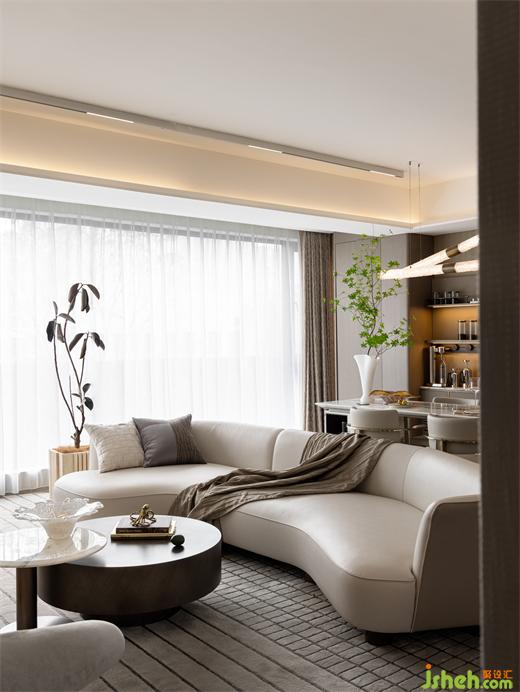 客廳是以一種溫暖而精致的方式,實現(xiàn)空間布局與使用功能的完美融合。整體以溫潤質(zhì)感和灰白調(diào)為主。素樸的用色、純粹的材質(zhì),生活的美妙,盡在設(shè)計細微處,盡在雋永美學(xué)中。
