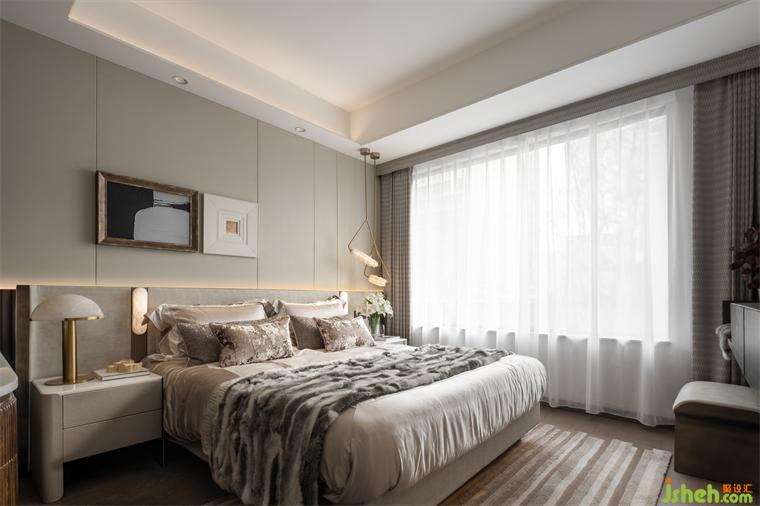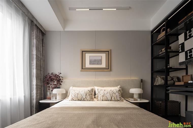 當(dāng)旋律逐漸放緩,空間便有了愈發(fā)柔和的呈現(xiàn)。主臥延續(xù)整體空間配色,線條的并置,光影的交織,細(xì)膩簡(jiǎn)約的飾面,與墻面上的裝飾畫相互呼應(yīng),讓空間呈現(xiàn)出統(tǒng)一的美感。
