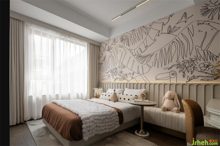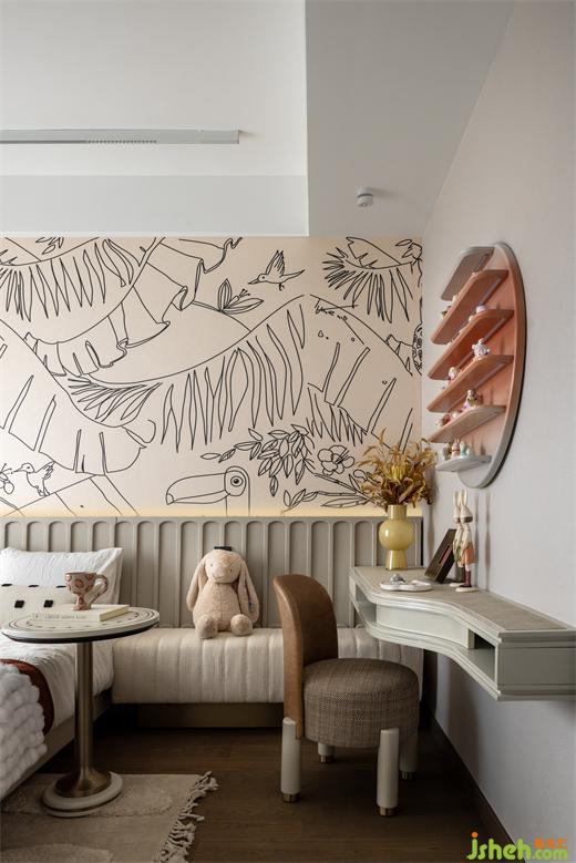 兒童房尊重孩子的個(gè)性和喜好,用色略微收斂,樣板間設(shè)計(jì)以有趣墻面涂鴉打造主題空間,家具的尺寸經(jīng)過精心選擇,形成舒適自由的氛圍。