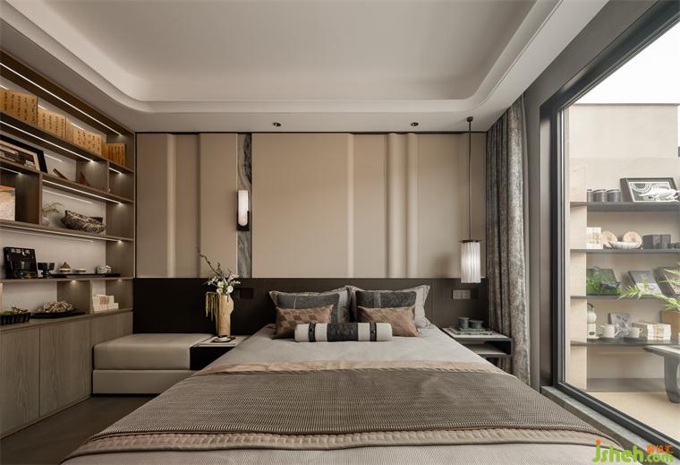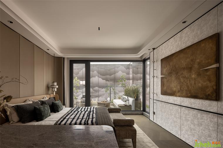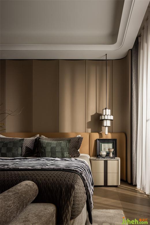 優(yōu)雅由心生,長輩房延續(xù)了咖色的醇厚基調(diào),以簡約的肌理勾勒出精致的細(xì)節(jié),塑造出放松、舒適的場域氣質(zhì)。