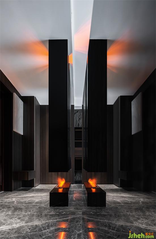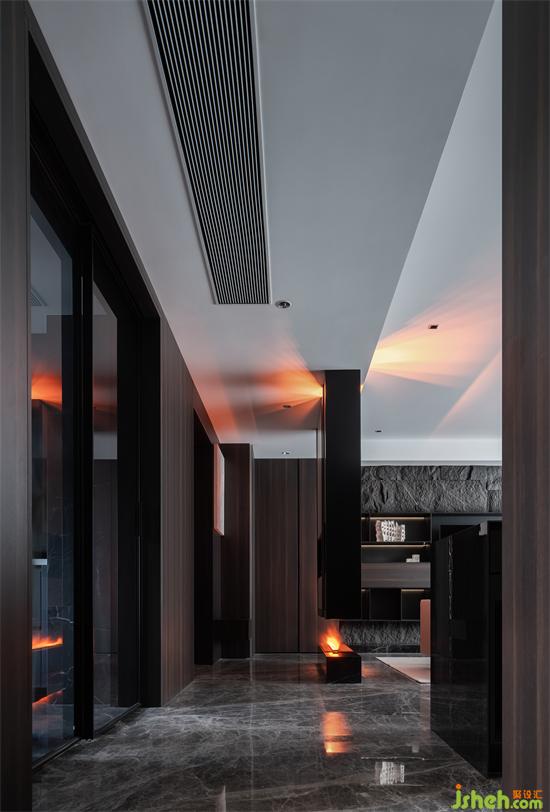 離,便是將空間結構重新劃分,我們在門廳處設置了一個懸浮的鏤空玄關,這樣既有效地保證了入戶的儲物需求,也能更好的兼具沙發(fā)區(qū)域的隱私。家裝設計儀式感便由此而來