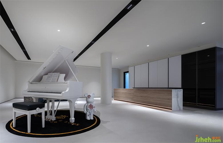 獨(dú)立地下室的優(yōu)點(diǎn)在于私密性良好,我們把這個(gè)空間定義為音樂劇場(chǎng),兩三百平空間里我們沒有做過(guò)多的隔斷,除卻剛需功能以外全做開敞化處理 。