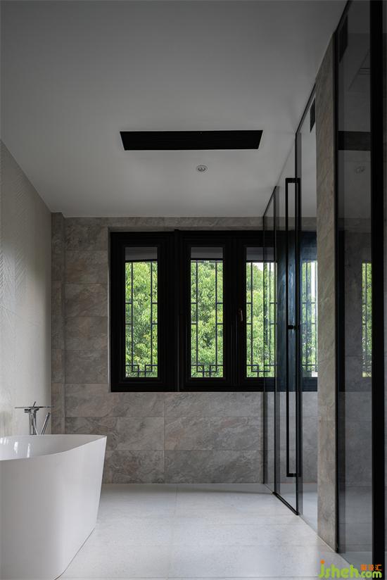 古樸的巖礦石拉近了與自然的距離,紋理突出的石材與潔白的浴缸形成了強烈的質(zhì)感對比。別墅設計躺進浴缸,卸下一身疲乏,仿佛融入自然的洗禮之中。