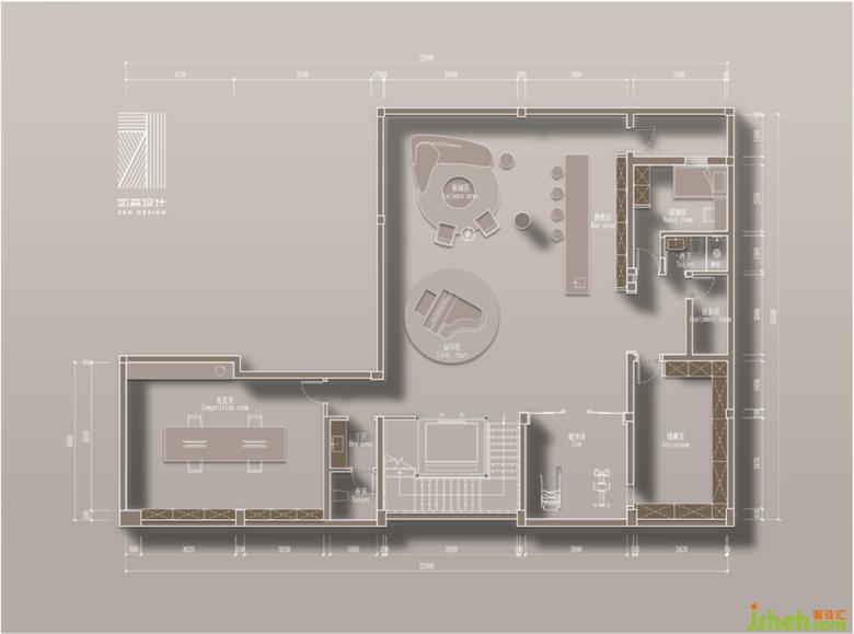 A low partition is made between the study and the bed. The function is slightly differentiated, and the privacy of sleep is also visually guaranteed
