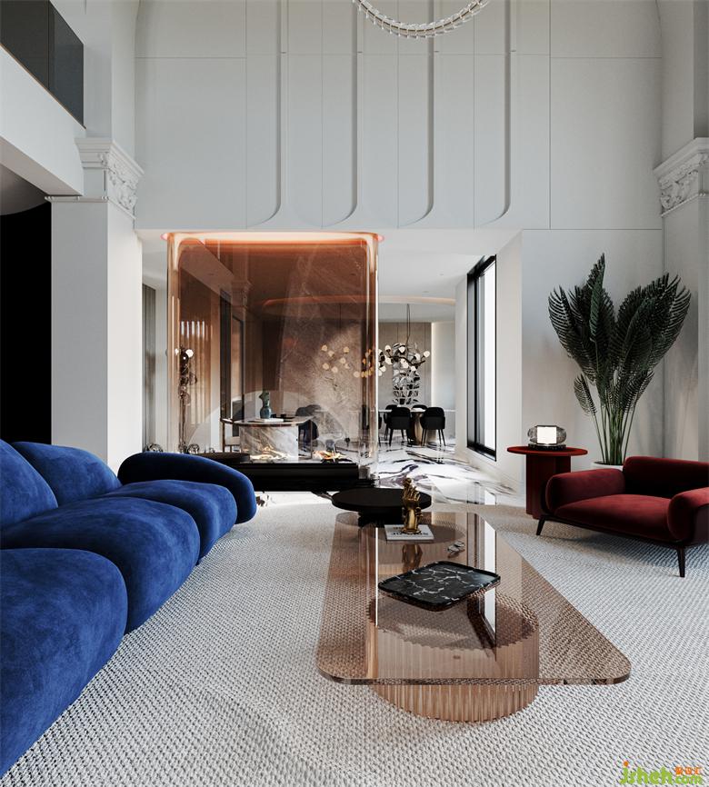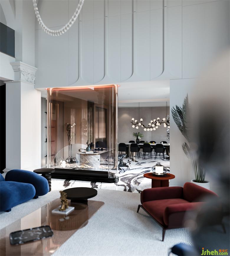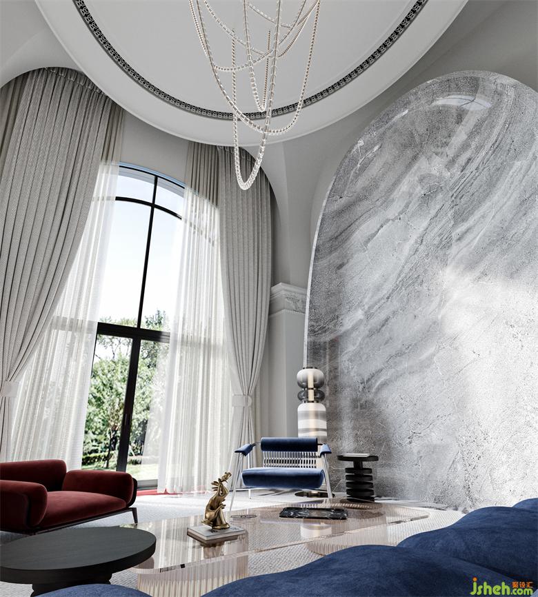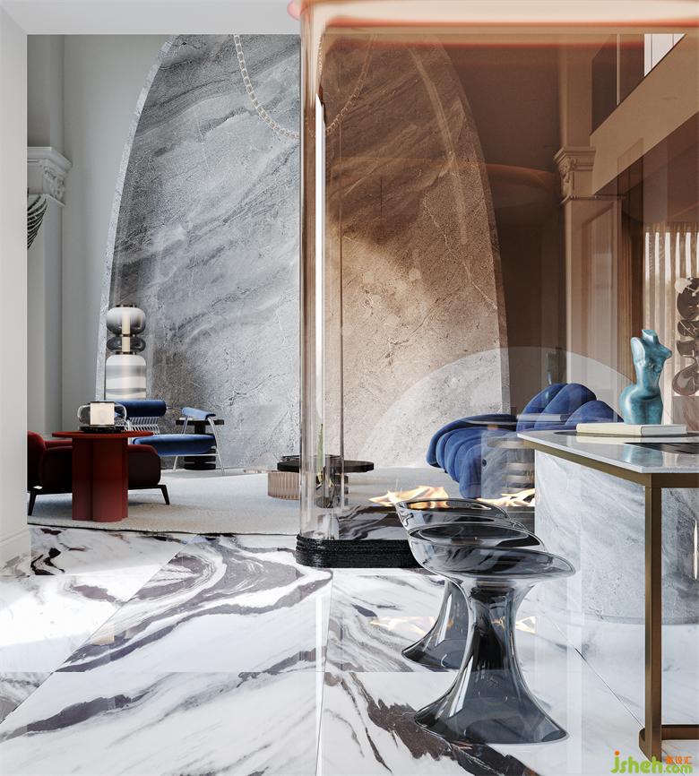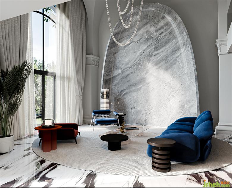 穹頂式的客廳設(shè)計(jì)將房屋的優(yōu)雅氛圍拉到極致,石材與窗戶的優(yōu)美線條在四周羅馬柱的加持下愈發(fā)營(yíng)造出古典浪漫的氣息,別墅設(shè)計(jì)憨態(tài)可掬的Mavimatt-Lithos沙發(fā)則為空間增添了些許趣味,紅藍(lán)雙色的搭配上下和諧呼應(yīng)。