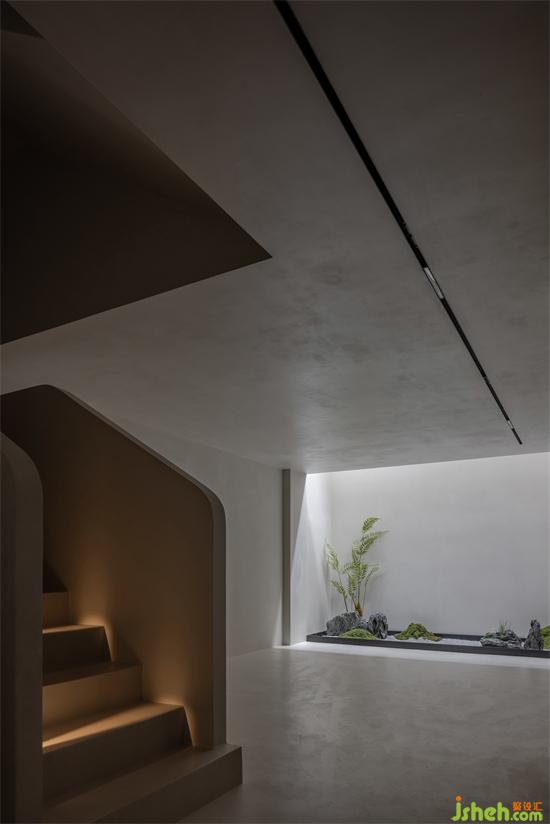 The diversity of the structure obeys the function of the space, the difference between inside and outside creates the step into the house, and coincidentally, the space above the top forms an arc-shaped stage area in the mezzanine. Natural daylight, in the quiet space to feel the power of nature, stone and green will bring the atmosphere of nature back to every inch of the building space.