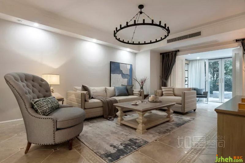 客廳的美式家具采用獨特的自然紋理和中性的色調(diào),避免了傳統(tǒng)美式的厚重感,帶來獨特的審美享受