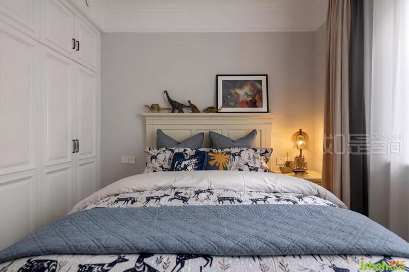 業(yè)主希望兒童房的硬裝和整屋風格統(tǒng)一,免得日后此房另做他用而需大改。目前則主要通過床品的選擇和小朋友的擺件收集來營造童趣氛圍。