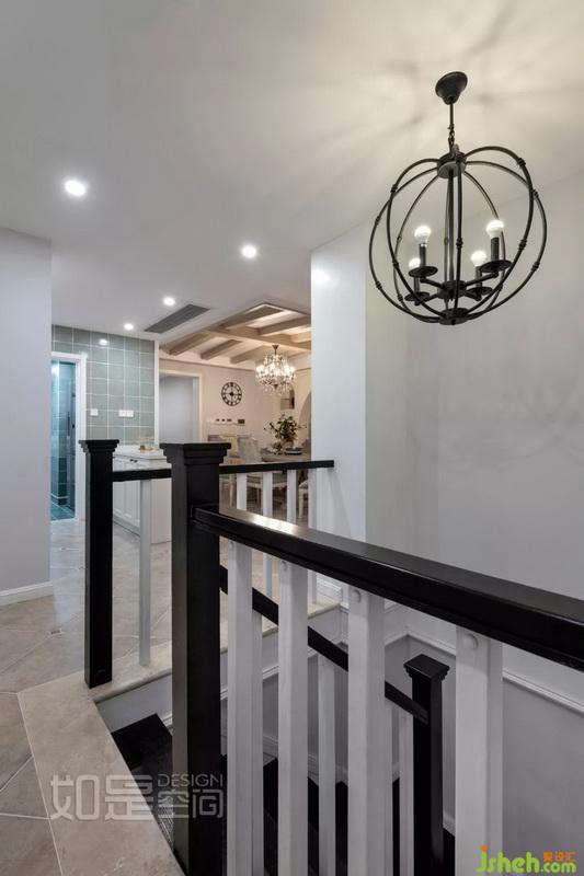小小樓梯間,似不起眼。經(jīng)吊燈的點綴,依然充滿設(shè)計感