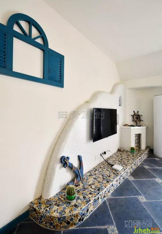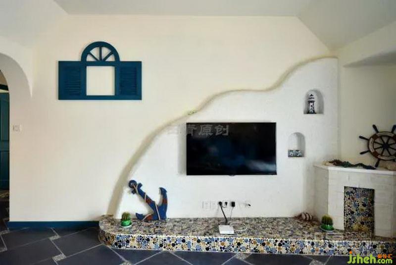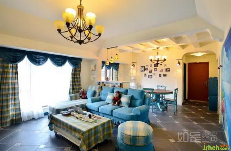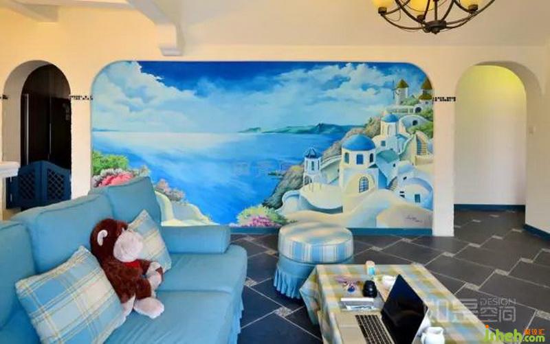 特色:本案除了具備地中海風格的普遍特征之外,最突出的特點是:以其豐富的色系,構成色彩斑斕的感覺。特別是手繪背景墻,凸顯了其家特有的美術氛圍。