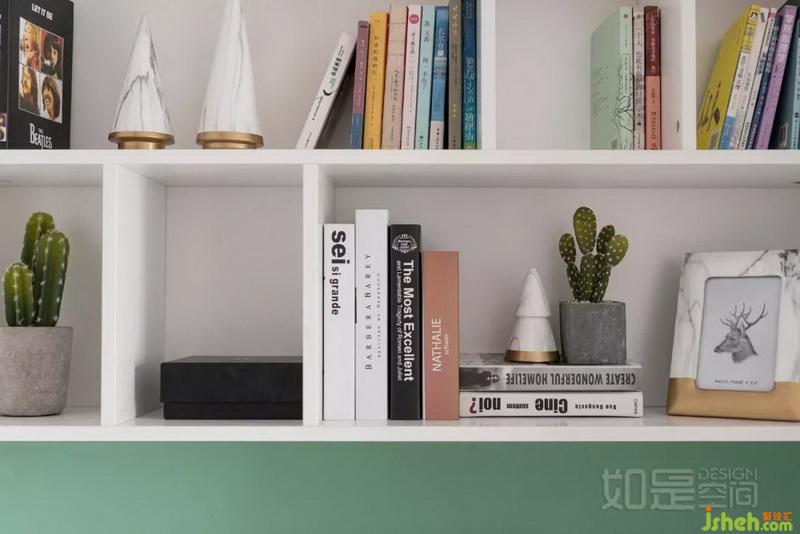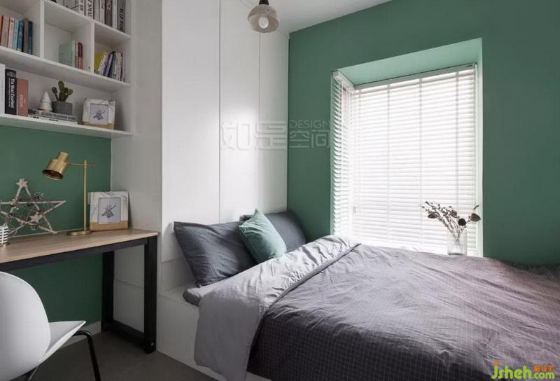 局部灰綠色,其明度和純度都較低,不會(huì)綠到刺眼,能為空間帶來低調(diào)、安寧的氛圍