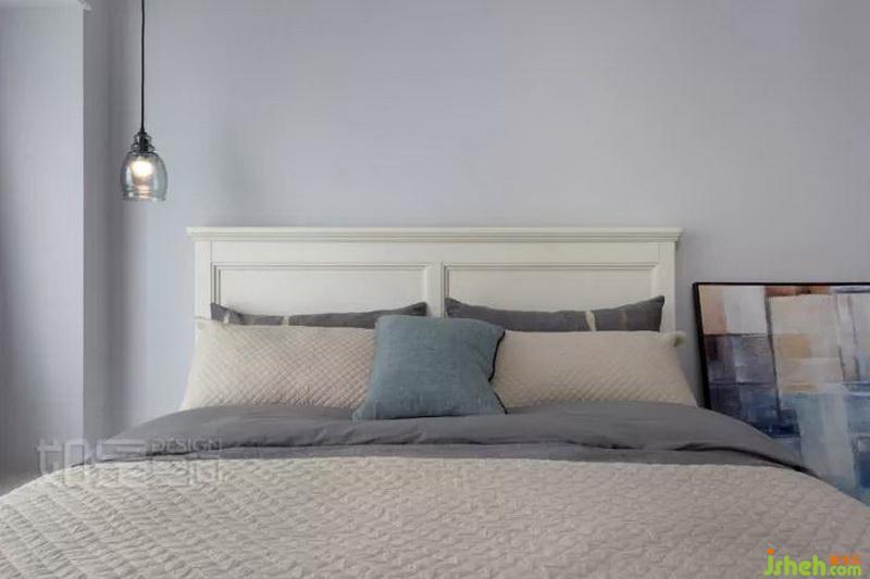 主臥同樣采用無主燈的簡潔設(shè)計。床頭一側(cè)點綴性懸掛極簡吊燈,帶來優(yōu)雅藝術(shù)感。
