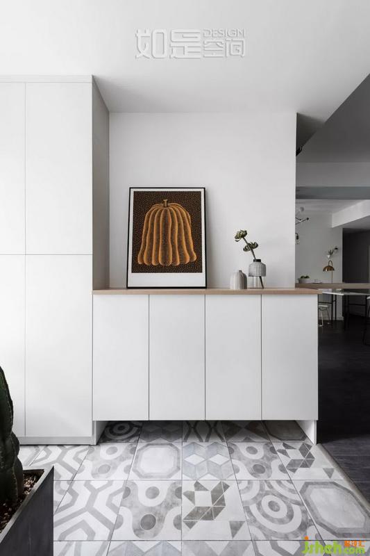 入戶地面用花磚鋪貼,既可以和客餐廳形成明顯區(qū)隔,同時(shí)也讓地面更方便打理,符合入戶區(qū)的功能性