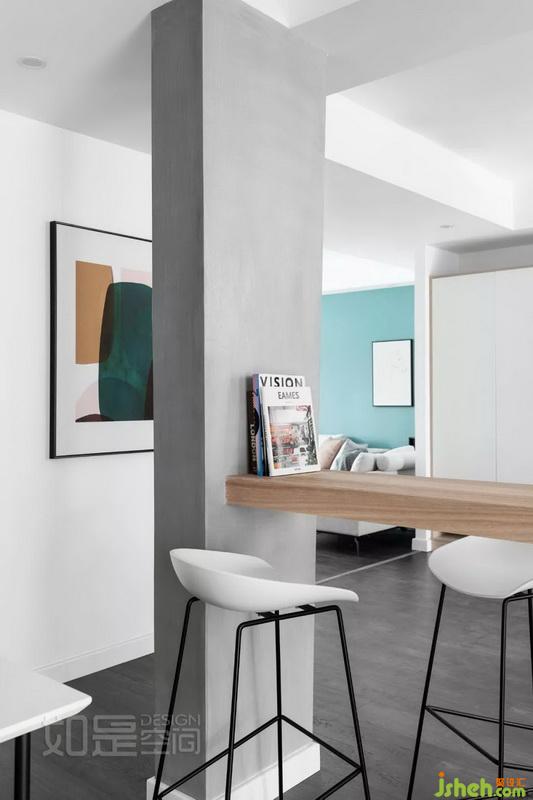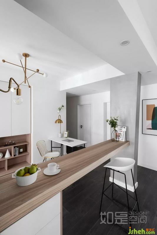 書(shū)房雖為開(kāi)放式,但與餐廳之間用一個(gè)吧臺(tái)劃分開(kāi),不僅讓餐廳光線更好,也有空間增大的視覺(jué)效果