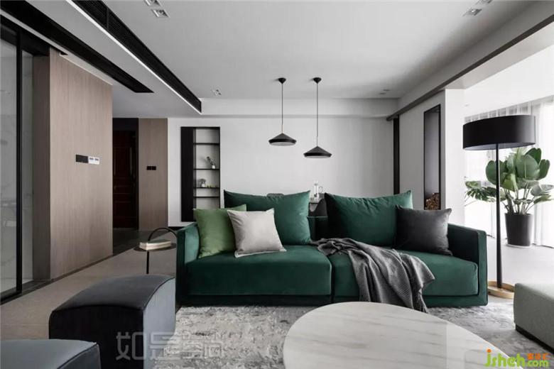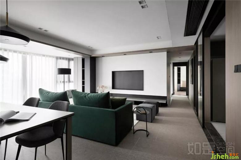 室內(nèi)設(shè)計(jì)是在本次設(shè)計(jì)整體以白色結(jié)合高級(jí)灰的木飾面為基調(diào),再搭配以經(jīng)典黑。以綠色的沙發(fā)作為點(diǎn)睛色,展現(xiàn)一種對(duì)于沉靜、舒適的向往