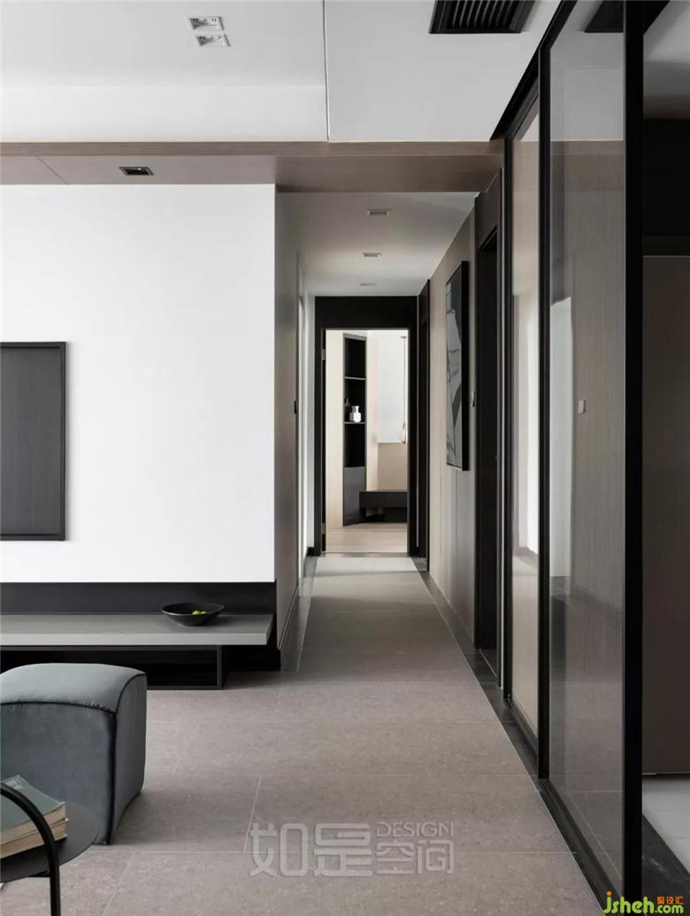 過道上的門框都是直通到頂?shù)?,無形中放大了空間感,且顯得大氣、利落。
