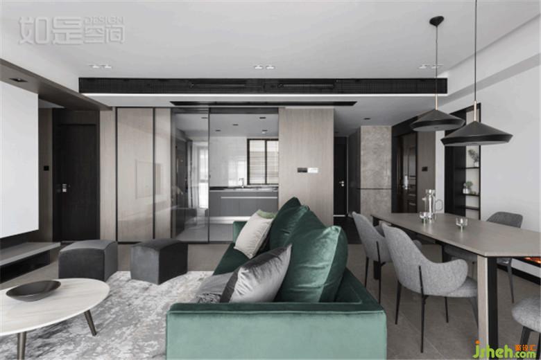 業(yè)主想要開放式廚房,但又擔(dān)心油煙問題!所以室內(nèi)設(shè)計(jì)師將玻璃設(shè)計(jì)為外掛,顯得實(shí)用、通透、有質(zhì)感。打開之后兩米寬的門洞,讓客廳的視野有了很大延伸。