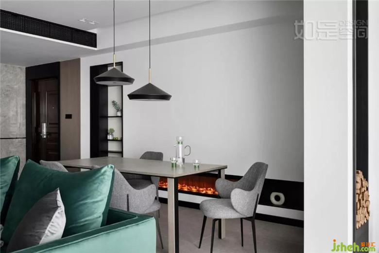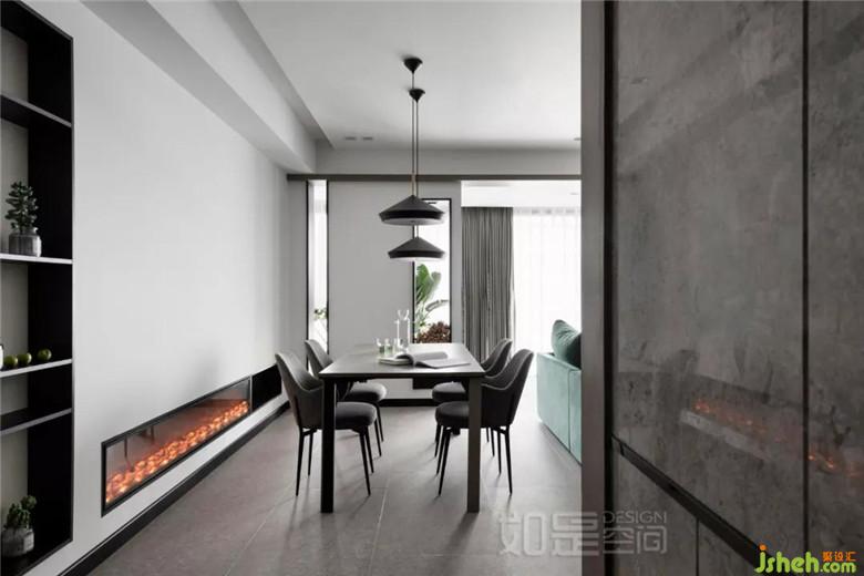 壁爐閃爍在黑白灰的空間里,讓整個(gè)屋子靈動(dòng)了起來(lái)。