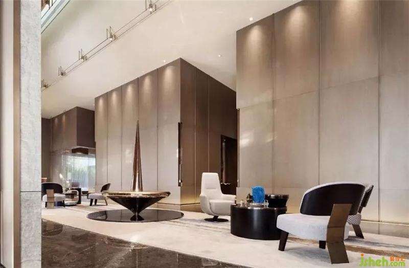 金生水,水生木,設(shè)計師用世界最初的構(gòu)成元素,凝練空間的獨特氣韻。金,或以亮面凸顯尊貴,或以噴砂體現(xiàn)內(nèi)斂;水,或以動態(tài)流轉(zhuǎn)時光,或以靜態(tài)觀照世事;木或以深色沉穩(wěn)內(nèi)心,或以淺色瀲滟柔光。室內(nèi)設(shè)計師