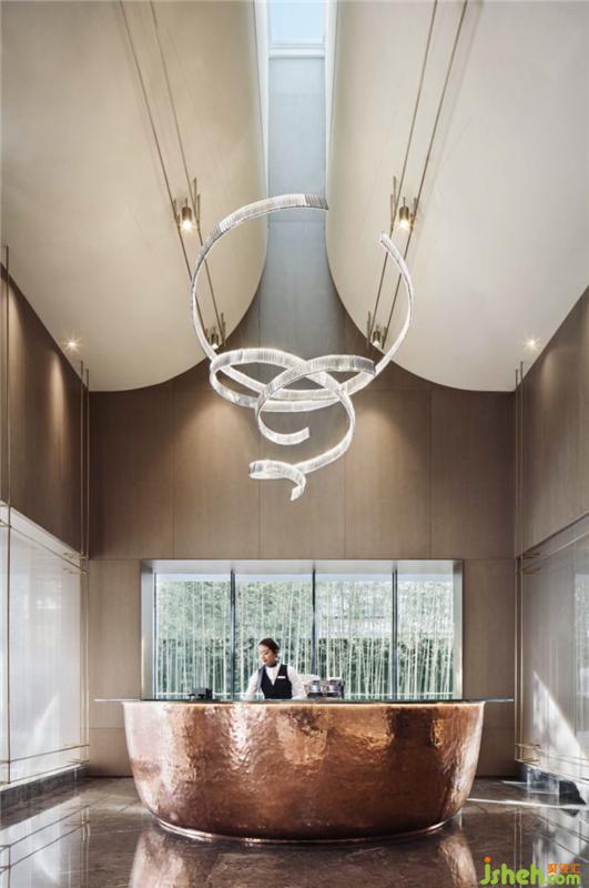 洽談區(qū)一線天或許是鼓滿風的帆、或是追逐的海浪、或是舞臺上起伏的幕布,在觀者的頭頂畫出優(yōu)雅的弧線。津門的概念嵌入在每個空間細節(jié)中,海、運河、貿(mào)易、商業(yè)帶給天津不同于內(nèi)陸的眼界,使之在變化中洞悉規(guī)律。