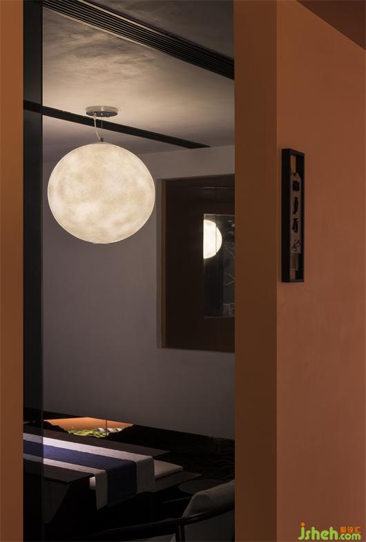 延續(xù)了流動形態(tài)的線條語素,同時以取自甲板的暖木色調(diào)、木藝材料裝點,從一種全新的角度詮釋感官沉浸的??臻g布設月球元素吊燈,將人的視線還給自然意向,模糊內(nèi)外與自然的界限。