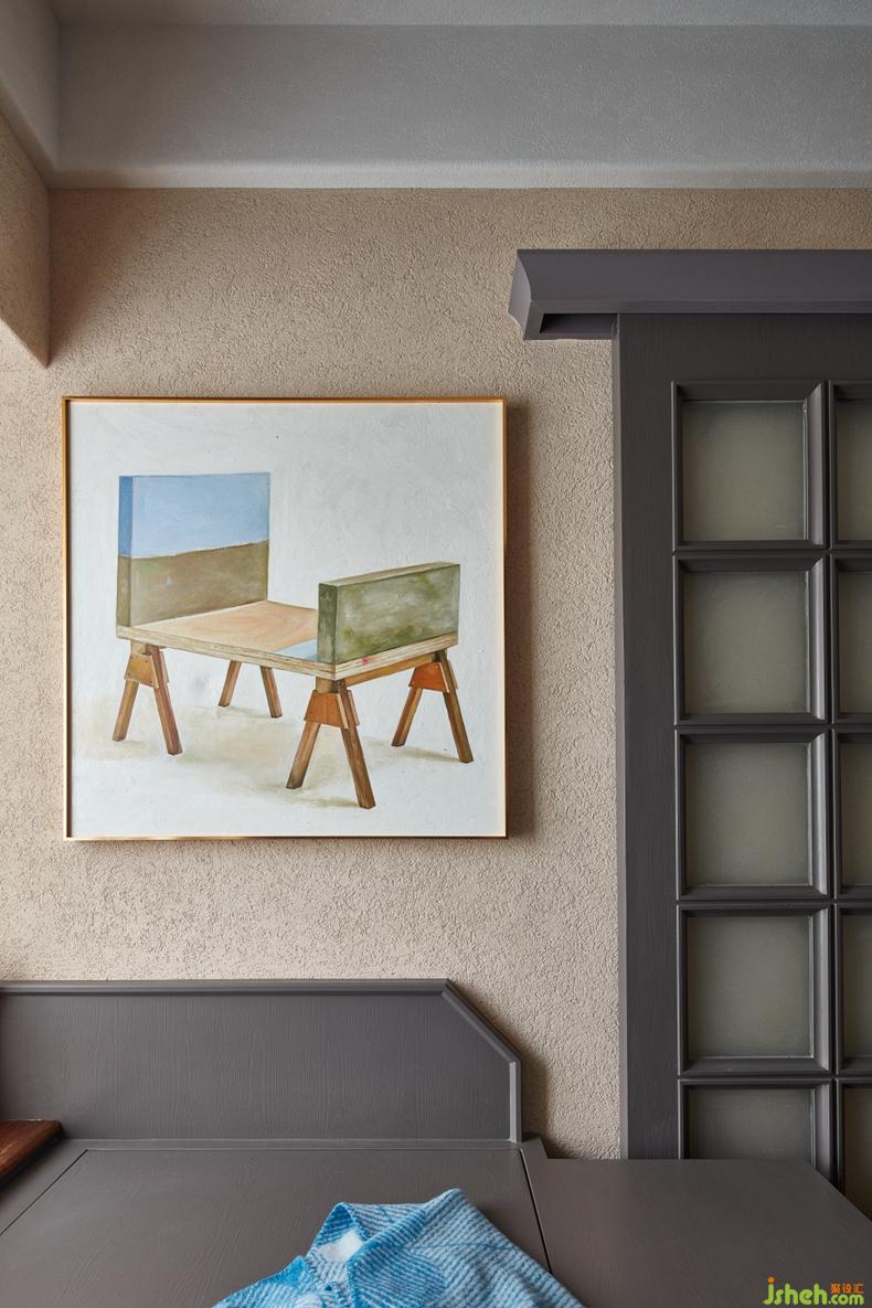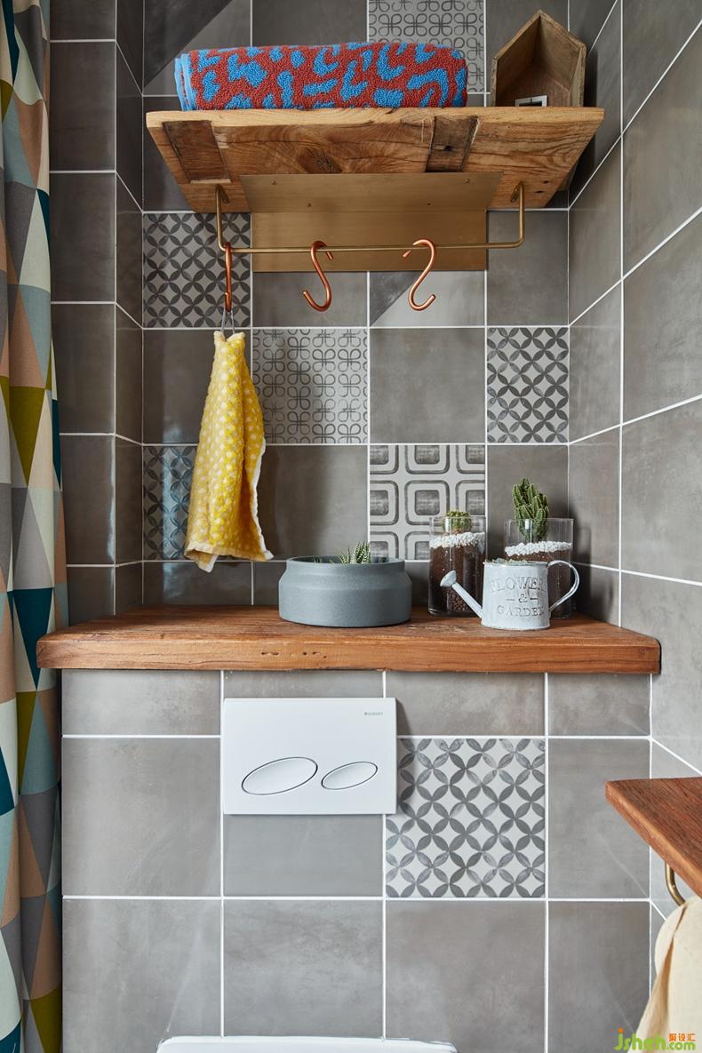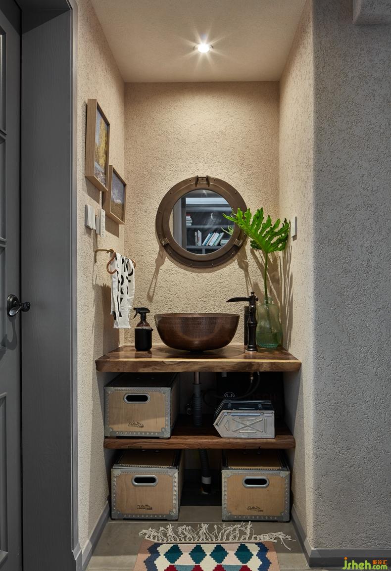 ▲ 實(shí)木板加臺(tái)上銅盆的洗手臺(tái)設(shè)計(jì),獨(dú)特另類。因?yàn)橐呀?jīng)干濕分離,墻面選用的都是防水的灰泥。所以防方面不用太擔(dān)心,不過平時(shí)還是要稍微勤快一點(diǎn)打理。想要特立獨(dú)行?還是簡單省事?畢竟魚和熊掌不可兼得,G先生做出了自己的選擇。
