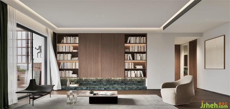 客廳電視柜設(shè)計(jì)成點(diǎn)電動(dòng)推門(mén),要看電視時(shí)只需要輕輕一按遙控,推門(mén)就會(huì)從兩邊自動(dòng)打開(kāi),平時(shí)在家,三米家居設(shè)計(jì)把電視藏起來(lái),秒變家庭“圖書(shū)館”。