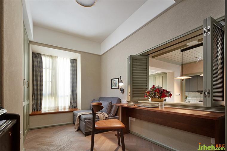 6、原本主臥的轉角陽臺為空間死角,也同樣被納為主臥空間,深圳家居設計滿足男主的閱讀需求的同時,把室外景觀一同引入室內(nèi),一步一景。
