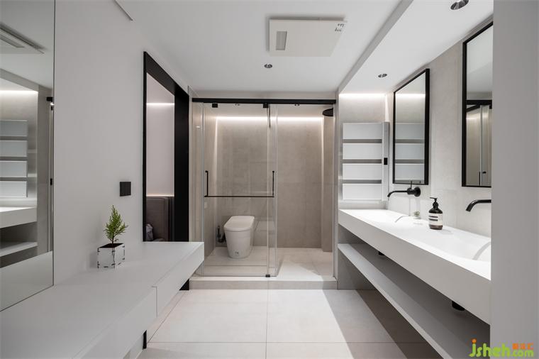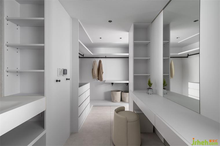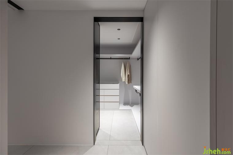 為配合男女主人不同作息時間與生活習慣,需規(guī)劃雙進出動線,因此在設計主臥時,特別思考使用者在空間中的行進動線與使用方式。入門處首先設置外出的常用衣柜,主要放置日常衣物,沿此動線可直接進入更衣間及衛(wèi)浴,盥洗或更衣時,能不必繞過臥室,避免干擾彼此睡眠。