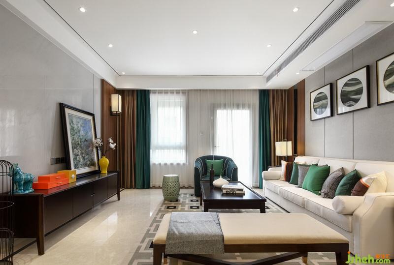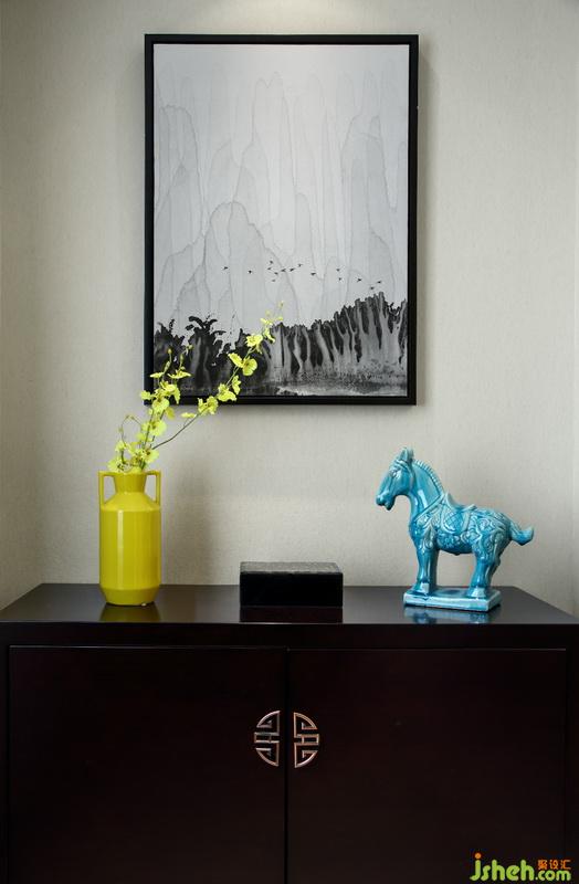 “新中式”風(fēng)格已逐漸成長(zhǎng)為代表中國(guó)文化的現(xiàn)代設(shè)計(jì)風(fēng)格,本案室內(nèi)設(shè)計(jì)師不刻意地描述某種具象的場(chǎng)景或物件,將清雅含蓄、中國(guó)傳統(tǒng)家居中的經(jīng)典元素與現(xiàn)代設(shè)計(jì)手法相結(jié)合,將東方文化的美感融入現(xiàn)代生活。色彩以煙墨色系為主體基調(diào),點(diǎn)綴極具東方傳統(tǒng)氣質(zhì)的祖母綠,孔雀藍(lán),帝國(guó)黃,沿襲了各自的優(yōu)雅高貴,又在結(jié)合之余,創(chuàng)造了新的吸引磁場(chǎng),使空間既保持著寬敞明亮的視覺觀感,又鋪陳了儒雅溫潤(rùn)的氛圍。