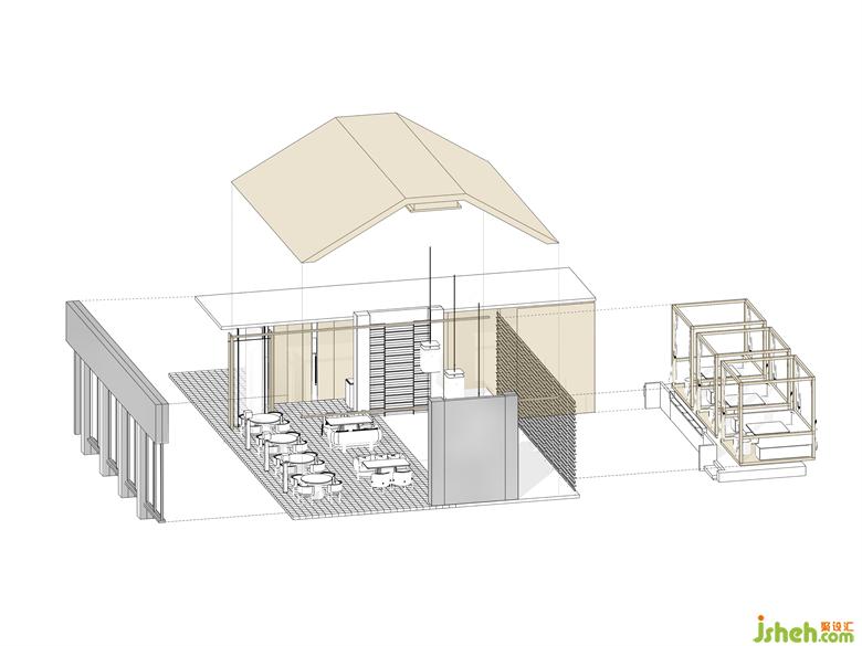 除此之外,養(yǎng)生館內還配有9人間的足浴影音室,室內分為三階,側立面飾以大面積木柵欄,整體感覺像一個小型電影院。