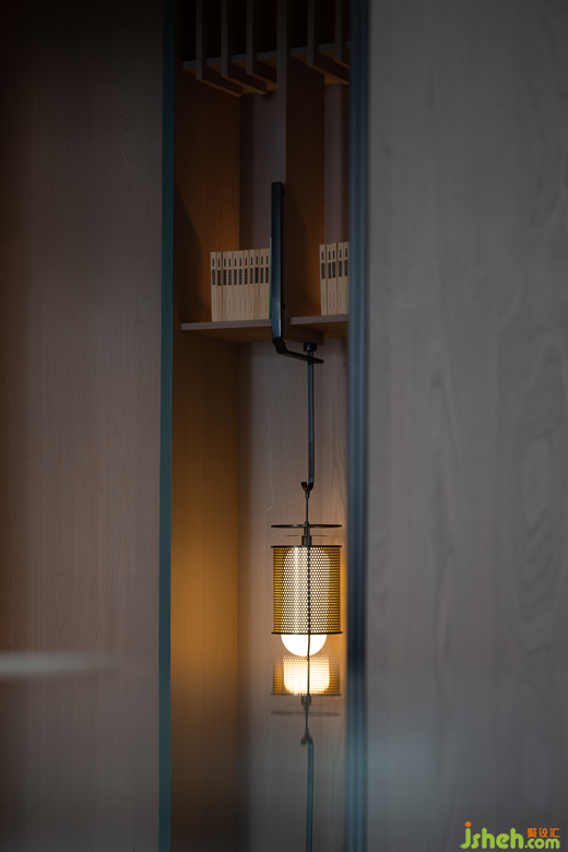 “幾百年人家無非積善,第一等好事只是讀書”,針對書香揚州,設計師在二樓包廂走廊空間精心設置了連門書架,銅色的精致燈具放置其中,顧客需要推開一側(cè)穿插“書架”中書卷氣息的門扇方能進入包廂中。另一側(cè)藏在和紙中的包廂仿佛置身于朦朧霧氣之中,更有一種江南之美。