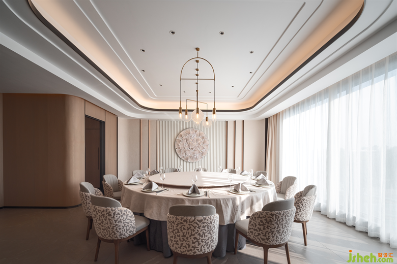 背景墻上干凈清透的石材色營造出自然意境,與木制的搭配間有著最契合的交點(diǎn),空間內(nèi)的陳設(shè)之物在光影藏納間、在虛實(shí)互映中,交織出自然的詩意與東方的風(fēng)雅。餐廳在端正的序列格局與簡凈的美學(xué)風(fēng)貌中,構(gòu)建起就餐禮儀與氛圍。