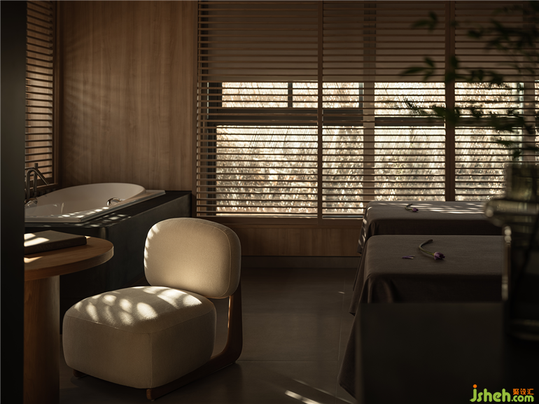 陽(yáng)光掠過(guò)格柵,織就光陰,滌蕩塵囂。和子SPA會(huì)館設(shè)計(jì)師摒棄繁飾,用最質(zhì)樸的光影,塑一室靜謐,享身心輕松,憐時(shí)光流逝。