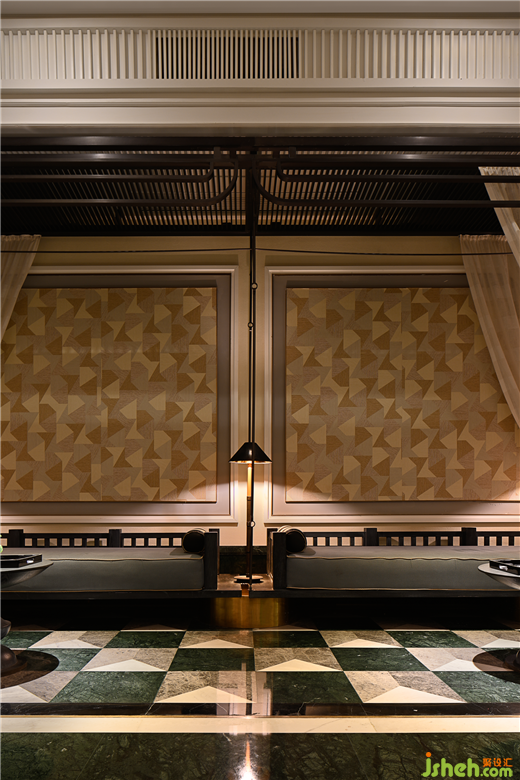 上瑞元筑融合不同的藝術(shù)風(fēng)格,為每個區(qū)域規(guī)劃了獨(dú)特的設(shè)計特點(diǎn)。從而創(chuàng)造一個充滿生機(jī)、奢華和優(yōu)雅氛圍的地方——充滿郁郁蔥蔥的綠色植物、精致的紋理和美麗的圖案。在青泰,上瑞元筑將華麗的藝術(shù)裝飾與中世紀(jì)時期的精致優(yōu)雅相融合,打造出展現(xiàn)溫暖色調(diào)、大膽印花和裝飾性飾面的空間。這種創(chuàng)造出一種放松感,使人們感覺像是在享受夏夜,增強(qiáng)旅程愉悅感。