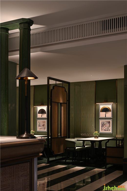 弧形拱門賦予了通向包間的道路超強(qiáng)的節(jié)奏感,還帶有濃郁的古典風(fēng)情??臻g像舞臺(tái)一樣的場(chǎng)景,但從不平庸,但卻舒適而令人放心。
