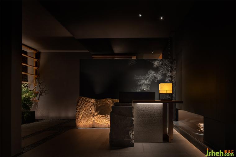 凡此種種,講究主體與客體之間反差帶來的美,如“煙生遙岸隱,月落半崖陰”,詩境中彼岸與明月何所見,只因煙生、涯陰。設(shè)計(jì)師運(yùn)用光影手法,讓感性的美走進(jìn)深邃的黑,空寂而深遠(yuǎn),如同在水墨中留以隱秘和留白,以表幽玄意境。