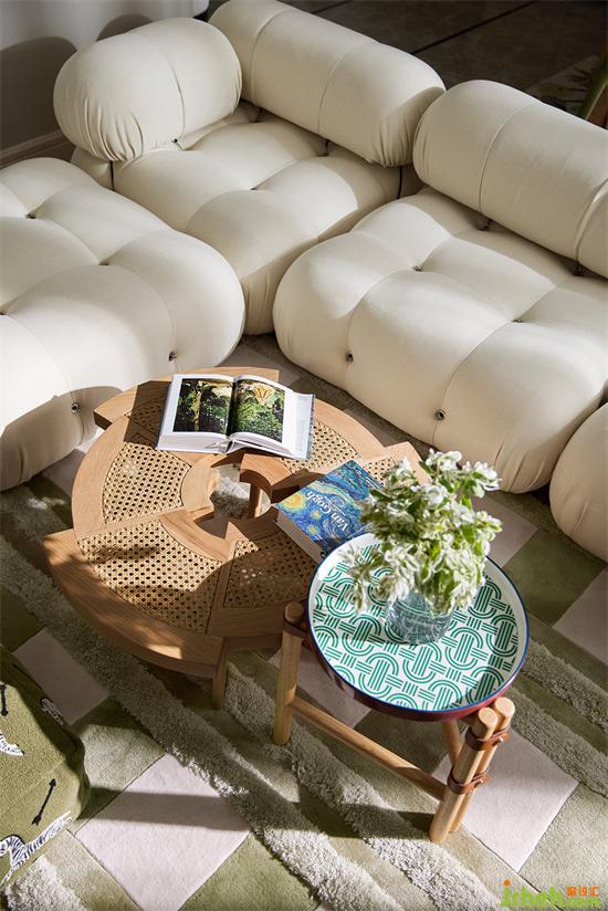 原木色的茶幾與邊幾,溫潤(rùn)質(zhì)樸,草綠色的單椅呼應(yīng)空間的綠色主調(diào),清新自然的顏色,家裝設(shè)計(jì)讓人足不出戶,也能感受大自然的氣息。