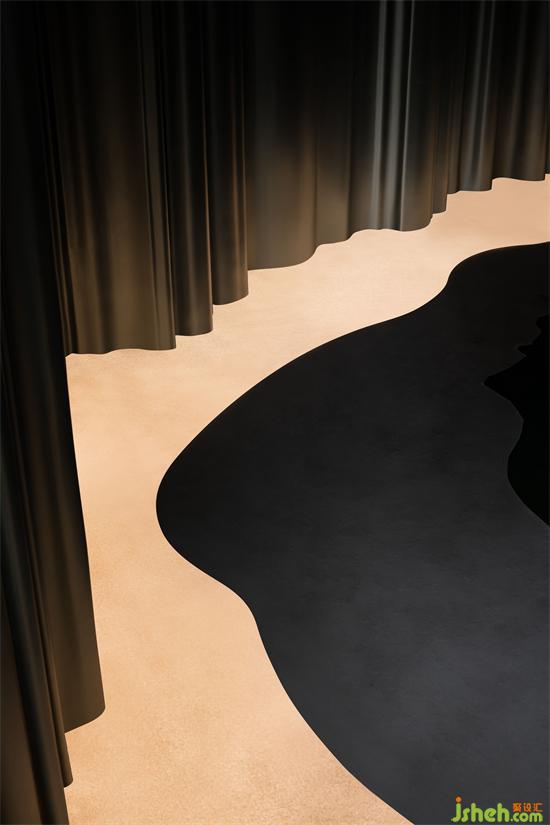 “猶抱琵琶半遮面”的神秘渺遠(yuǎn),辦公室設(shè)計在逶迤曲折的行進(jìn)中將焦點緩緩聚攏在整個展示舞臺,地上倒映的星河光影將幽靜的昏黃揉碎,故事的層次也由此慢慢揭開。