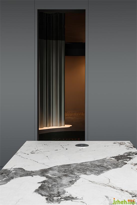 沙龍區(qū)的硬朗直線與公共辦公區(qū)域的優(yōu)雅弧線相結(jié)合,剛?cè)嵯酀?,展現(xiàn)出幾何的藝術美感,辦公室設計使空間富于變化,實現(xiàn)了一種微妙的平衡。