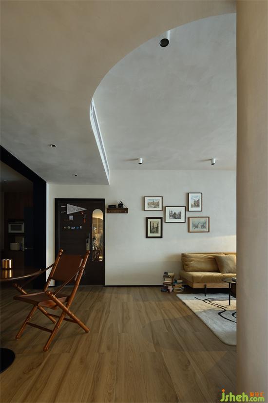 弧形墻體與頂部過渡,憑借婉曲的線條勾勒出空間溫潤有致的肌理脈絡。家裝設計弧形元素的應用中和了空間的空與靜,讓空間更加立體完整而富有層次。