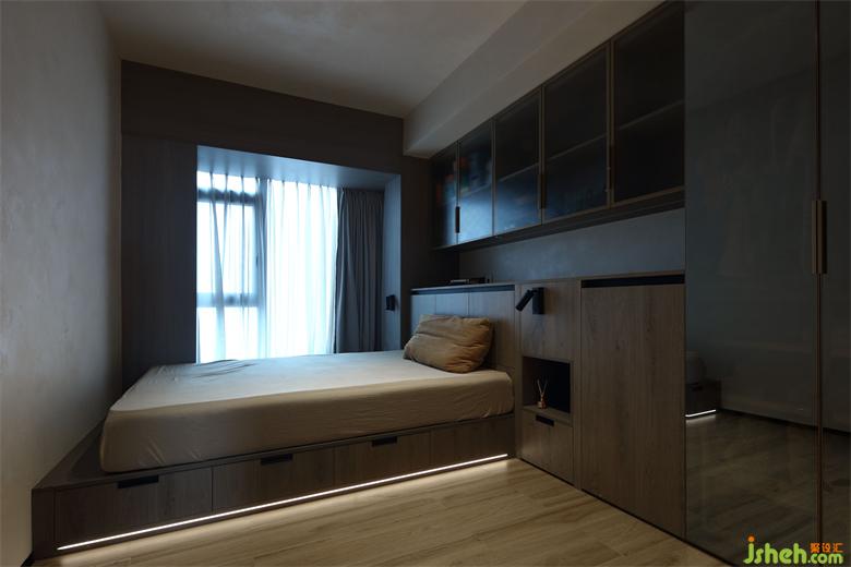 主臥柜體收納充裕,榻榻米床的下方也有大量收納空間,便于空間保持足夠的整潔。家裝設計安靜的氛圍亦為休憩提供了良好的環(huán)境。