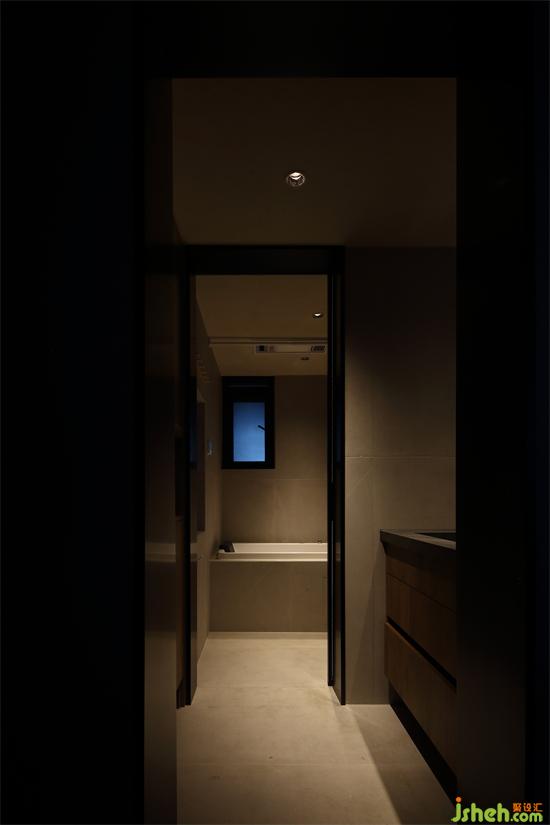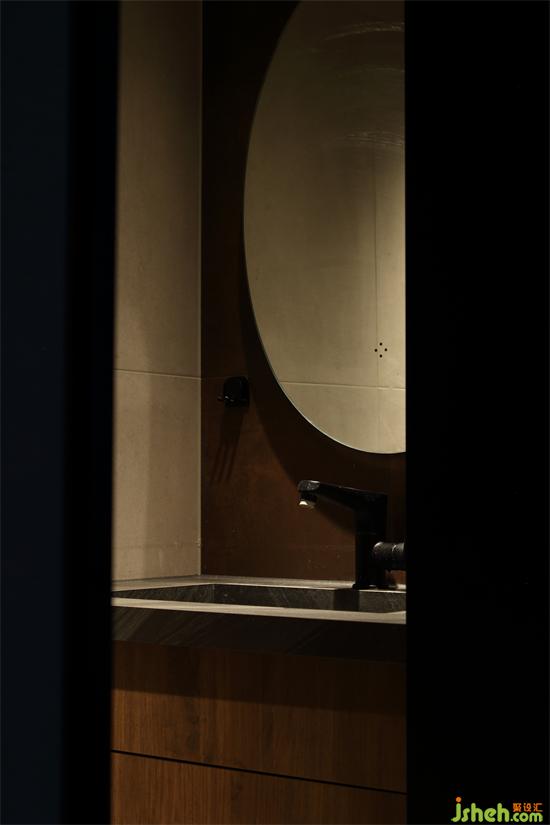 衛(wèi)生間采用玻璃門,透光的同時又保障了隱私,家裝設計延續(xù)空間的棕色調(diào),理性克制,別具調(diào)性。