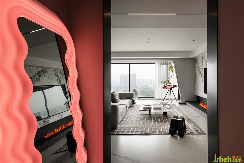 擁有活潑波浪線邊框的網(wǎng)紅鏡,用搶眼的粉色讓空間著上一層夢幻質(zhì)感。