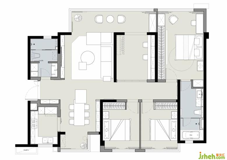 內(nèi)斂理性的灰色調(diào),和諧而不事張揚(yáng),敘說空間優(yōu)雅的底色,仿若娓娓道來(lái)。
