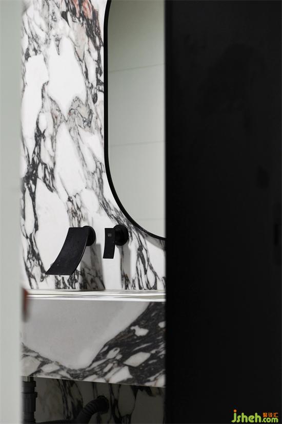 衛(wèi)生間干凈整潔,同時(shí)延續(xù)整個(gè)家中對于理石紋路磚的應(yīng)用,中和了空間的單調(diào)與沉悶。成都風(fēng)華苑復(fù)式裝修設(shè)計(jì)粗線條的紋路,將粗獷與優(yōu)雅相結(jié)合,充滿著動(dòng)感的張力。